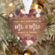 Bois rustique, Brosse moderne, Aquarelle Bourgogne Marsala Floral, Notre premier Noël en tant que Monsieur et Madame Heart Mariage Ornement