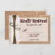 Cette carte de réponse mariage a un arrière - plan d'impression sur bavettes et dentelles avec un design imprimé à l'arc de ficelle. Idéal pour les mariages campagnards, les mariages de granges et les mariages de cowboy. La conception de l'impression de burlap est également au dos de la carte. Choisissez parmi les angles carrés ou arrondis. Conçu pour correspondre à ces invitations rustiques de style typographie : cartes RSVP de mariage burlap, cartes Rsvp rustiques, cartes Rsvp de pays, mariage de grange, cartes Rsvp de l'ouest du pays, cartes Rsvp cowboy, cartes Rsvp occidentales, cartes Rsvp de mariage burlap et dentelle
