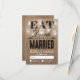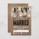 Ces cartes Rsvp pour mariage de campagne fantaisiste viennent comme un ensemble mariage assorti avec un effet de burlap brun rustique arrière - plan, élégant lumières scintillantes à cordes de bocal de mason, les mots "EAT, BOIRE ET ÊTRE MARIÉ" et vos détails de réponse mariage.