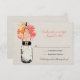 Carte RSVP correspondant parfait pour un mariage de style champêtre ou peut-être que vous aimez juste Mason Jars! Mason Jar accroché à un crochet rempli de fleurs sauvages de pays. Un arrière - plan chaud de burlap crème avec dessin noir d'un Mason Jar rempli de corail, rose, orange et jaune fleurs sauvages de pays.Si vous avez des questions sur ce design ou voulez un changement de couleur s'il vous plaît envoyez-moi un courriel à paula@labellarue.com Vérifiez aussi pour les cartes d'INVITATION, de RÉCEPTION et de SIÈGE d'INVITATION à correspondre!