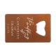 Suivez la tendance d'automne des tons terreux avec notre ouvre-bouteille mariage de automne dégradé d'orange brûlé à brun. Une simple typographie blanche personnalisée sur un cadeau rustique pour un look minimaliste. Les teintes bohèmes évoquant l'argile de terre cuite mettent en valeur votre élégante calligraphie sur cette réception personnalisée.