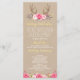 Rustic Floral Peony & Deer Antler Wedding Programs - présente un arrière - plan imprimé en papier kraft avec des bois de cerfs, des pivoines roses et des feuilles imprimés en feuille d'or et des lettres assorties.