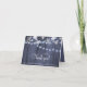 Elégant mariage merci plié carte modèle avec votre personnage fond de saignement photo horizontale orientée paysage à l'intérieur, flocons de neige blancs et des lumières chatoyantes à cordes sur bleu foncé gray arrière - plan de grange bois. Convient aux mariages de campagne rustique hiver saisonnier des paysages merveilleux.