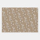 Un élégant papier d'emballage blanc de vacances avec un arrière - plan kraft rustique avec 3 motifs de petites tiges de feuilles.