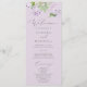 Ce programme de mariage rustique de lavande lilas est parfait pour un mariage de printemps ou d'été. Le design floral romantique et élégant présente des fleurs sauvages lilas violets d'aquarelle aux allures de jardin boho. Inclure le nom de la mariée et du marié, la date et le lieu du mariage, le message de remerciement, l'ordre de service, la fête de la mariée et un mémorial optionnel "en mémoire d'amour".