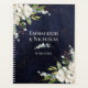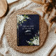 Un doit avoir lors de la planification de votre mariage. Arrière - plan bleu marine, texturé avec une couche d'or rose mouchetée. Deux beaux bouquets de roses blanches, chic et chic, dans les coins, un en haut à gauche et un en bas à droite. Ce design branché a une ambiance rustique et boho chic.