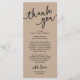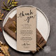Ajoutez une touche personnelle et attentionnée à votre célébration mariage avec ce carte de remerciements de dîner rustique moderne cottage brun kraft. Conçu pour être placé sur le siège de chaque client, cet élégant papier à lettres mariage vous aide à vous exprimer votre gratitude express et crée une atmosphère chaleureuse et accueillante. Avec son écriture rustique dessinée à la main, il est parfait pour rehausser votre décor de dîner mariage, de réception ou de dîner de répétition. Customisez avec vos noms, et / ou un message spécial pour le rendre vraiment vôtre. Une belle tenue pour que les clients puissent se souvenir de leur journée, cette carte est un détail élégant qui complète les fêtes rustiques des cottages.
