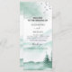 Rustic Mountain Forest Watercolor Spring Wedding Program Card sur arrière - plan blanc - comprend une belle et élégante typographie avec des arbres botaniques modernes, des montagnes, des oiseaux et de la verdure pour la célébration spéciale du mariage.
