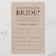 Cette charmante feuille de jeu de baby shower rustique "Quel âge avait la mariée ?" est simple et charmante - parfaite pour n'importe quelle fête. Ce jeu amusant et facile est sûr de faire rire à n'importe quelle fête ! Demandez à la famille et aux amis de vous envoyer des photos de la mariée à différents âges et faites-les imprimer. Numéroter les et placez-les près de ces feuilles de jeu. Donnez simplement une feuille à chaque invité (n'oubliez pas les stylos) et laissez la compétition commencer ! Vous serez étonné de voir combien de personnes connaissent vraiment l'âge de la mariée. En quelques secondes, vous pouvez voir à quoi ressemblera votre feuille de jeu. Sélectionnez simplement "Personnaliser ce modèle" et tapez le nom de la mariée.