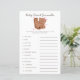 Beau thème fille de thème bébé baby shower mot scramble carte représentant l'illustration d'un petit avec arc et coeur roses. La liste des mots sur cette carte sont tous liés aux bébés et ils sont brouillés. Les invités vont rivaliser qui peut les débrouiller tous en premier ! RÉPONSE CLÉ : 1. siège de voiture 2. lait 3. parc 4. sucrerie 5. couche 6. fauteuil roulant 7. pépinière 8. moniteur pour bébé 9. pédale 10. formule 11. canard en caoutchouc 12. poussette.