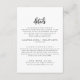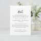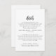 Cette carte d'enceinte de détails de mariage de script rustique est parfaite pour un mariage campagnard. Le design simple et moderne en noir et blanc présente une calligraphie manuscrite unique et fantaisiste, avec un style boho minimaliste contemporain. Personnalisable dans n'importe quelle couleur. Gardez le design minimal et simpliste, en l'état, ou personnalisez-le en ajoutant vos propres graphiques et artwork.