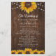 Ce design présente de jolis tournesols aquarelles peints sur un arrière - plan en bois rustique agrémenté de lampes à cordes. Cliquez sur le bouton personnaliser pour plus de flexibilité dans la modification du texte. Des variantes de cette conception, différents types de papier, ainsi que des produits de coordination sont disponibles dans notre boutique, zazzle.com/store/doodlelulu. Contactez-nous si vous avez besoin que cette conception s'applique à un produit spécifique pour créer votre propre article de correspondance unique! Merci tellement pour voir un DoodleLulu par 2 june conception de bogues!