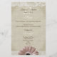 Jolie marguerite gerbéra rose accents ce menu rustique d'inspiration vintage pour compléter nos invitations.