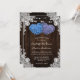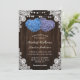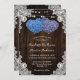Ces invitations de mariage rustique violet et bleu fleuri avec deux fleurs en forme de coeur d'hydrangée sur un arrière - plan en bois de grange orné de dentelle fleurie blanche et de lampes à cordes sont parfaites pour inviter vos invités à votre mariage rustique violet et bleu. Éléments correspondants disponibles.