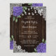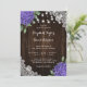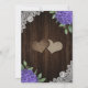 Invitations de mariage rustique et violet hydrangée inspirées des fleurs d'hydrangée violette sur un arrière - plan rustique en bois et dentelle.