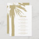 Palmier de sable couleur de la plage menu mariage modèle. Elégant modèle pour une soirée de mariage raffinée en bord de mer. Belle silhouette feuille de palme noire avec typographie stylée. Modèles personnalisables pour les couples qui se marient. Une partie de la belle assortiment de beige ou de couleur personnalisée.