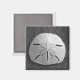Un dollar de sable repose sur la plage de sable avec un éclairage doux du coucher du soleil. Image prise en noir et blanc à Playa Grande, Costa Rica sur la côte de l'océan Pacifique. Customisez cet aimant de plage de coquillage de mer avec vos propres textes ou images.