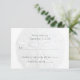 Une simple carte de réponse sable dollar, dans des tons gris et blancs neutres, peut être utilisée pour n'importe quel mariage ou événement d'anniversaire sur le thème de la plage. Un simple trou de clé et dollar est l'arrière - plan pour le texte noir imprimé à customiser en haut et en bas. Demandez aux invités un numéro d'assistance, ou changez le texte en simple "accepte" et "déclins". Reverse est gris clair solide.
