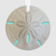 Dollar de sable naturel ornement d'arbre de Noël avec date d'année. Un arrière - plan bleu aqua brillant se voit à travers les trous du trou du sable. L'année peut être ajoutée à un côté et est aussi en bleu aqua, avec un look d'ombre. Il s’agit d’un dollar de sable séché, trouvé sur une plage de Floride, et montre ses minuscules imperfections. Parfait ajout à un arbre de vacances à thème côtier.