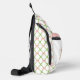 Ce sac à bille à pickleball a un design de poche avant avec une image aquarelle d'une crête entourée de branches florales avec des pagaies en vichy pickleball vertes et roses au centre. Le sac à dos principal a un motif de treillis vert avec des arcs roses autour du bord avec le même motif sur les côtés. Les couleurs utilisées comprennent le vert mousse, le rose roux et le bronzage. Vous pouvez personnaliser avec un nom.