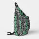 Ce sac à élingue présente un aspect saisissant et à la mode, accentué par des rayures verticales pixelisées numériques abstraites attrayantes en vert menthe, gris deux tons et noir. Son design unique assure une présence visuelle audacieuse, ce qui en fait un accessoire exceptionnel pour toutes les occasions, parfait pour ceux qui veulent faire une déclaration élégante.