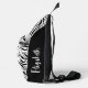 Le motif en zèbre noir et blanc est imprimé sur l'avant de ce sac à fronde avec votre nom sur le côté. Créez-vous pour vous-même ou offrez-en un cadeau.