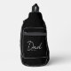 Celebrate the year he officially became a Dad with this stylish and useful sling bag. Featuring a modern, clean design, the customizable word "Dad" is boldly displayed with "Est." in modern script followed by the customizable year. It's the perfect gift for Father's Day, a new dad, a pregnancy announcement, or any day he wants to show off his favorite title. Created by Simply Farmhouse Press.