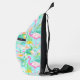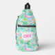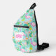 Cette conception Sling Bag dispose d'une impression d'été flamingo préppante. Vous pouvez personnaliser avec vos Initiales Monogram.