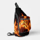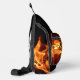 Ce Sling Bag unique est en flammes avec des flammes de feu photographique orange vif sur le noir. Il fait chaud, Tandis que vous serez cool avec vos biens personnels solidement accroché à la poitrine. Il est pointu, distinctif, élégant et amusant avec de belles flammes brûlantes. Personnalisez avec les initiales. Cette image est une photographie de feu originale par JLW_PHOTOGRAPHY.