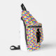 Ce magnifique sac à élingue présente la silhouette d'un homme avec les mots "Fière d'être gay" en lettres arc-en-ciel sur son corps. Un design inspiré par ma conviction passionnée que chacun est égal, quelle que soit sa sexualité. L'arrière - plan est composé de petits hommes, chacun a est une couleur différente de l'arc-en-ciel.