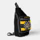 Sling Sac noir avec noir, blanc, et or design de cercles concentriques et "COLUMBIA, MISSOURI CENTRE DE L'UNIVERS" et le Grand Sceau du Missouri au centre et "GO TIGERS! Columbia, MO" en script en haut. Ce design est un cri de lance pour Columbia, Missouri, une grande ville universitaire.