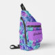 Ce Sac à Sling présente de magnifiques fleurs d'hydrangée combinées à un motif fleuri et luxuriant. Pour tous les amateurs de fleurs ! Couleurs en turquouise, lavande, bleu. Texte et couleur personnalisés !