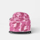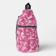 Ce sac est doté d'un charmant motif de style camo dans les tons bordeaux, rose et blanc cassé. Votre monogramme à trois lettres est en blanc à l'intérieur d'une bannière de cercle bordeaux assortie sur la poche.
