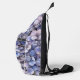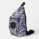 A bold and sophisticated Sling Bag featuring dramatic dusty blue and grey floral illustrations against a stark black background. The crisp white typography and classic layout set an elegant, moody tone. Perfect for a formal evening or a sophisticated wedding.