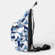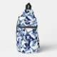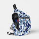 Ce sac de volley-ball amusant et sportif dispose d'un motif aléatoire de taille variée, bleu clair, bleu foncé & blanc volleyballs tournés à chaque sens sur un arrière - plan blanc - personnaliser avec le monogramme du joueur de volley - par katz_d_zynes