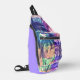Des palmiers roses chauds, violets et turquoise créent un motif tropical hawaïen abstrait sur le devant de ce sac à fronde avec votre nom sur le côté. Créez-vous pour vous-même ou offrez-en un cadeau.