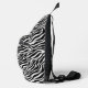 Ce sac à élingue personnalisé est affiché dans une impression d'art animal zèbre noir et blanc, acheter comme indiqué ou ajouter à lui. Impression sous licence