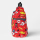 Make a "POW!" statement with this high-energy, retro-inspired comic book sling bag! Drenched in a vibrant superhero red, this design features a classic collage of action-packed speech bubbles—including "ARGGH!", "WOW!", and "OOOPS!"—mixed with edgy skulls, ticking bombs, and lightning bolts.