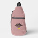 Ce magnifique sac à élingue présente un dessin d'une dinde aux grands yeux noirs, un petit bec jaune et des plumes de queue qui collent. Les pieds sont orientés dans des directions opposées, ce qui rend la dinde un air de nid. La dinde a du texte rose sur son ventre qui dit "Bon thanksgiving" et on dirait que les plumes ont été arrachées pour révéler le message.