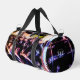 L'oeuvre originale de ZoeSPEAK sur ce sac Duffel est une photo originale d'un ensemble de tambours. Les tambours noirs brillants avec leurs jantes argentées reflètent les couleurs des lumières du studio, blues, rouges et verts. Des cymbales au-dessus des tambours attendent d'être frappées. Il y a du texte monogramme facultatif à chaque extrémité du sac. Ceci est configuré pour que vous personnalisiez ou supprimiez si vous le souhaitez.