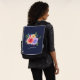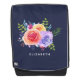 Sac à dos personnalisé avec un joli bouquet de roses aquarellés avec des sprigs, des feuilles et des branches, le tout dans un arrangement floral coloré. Arrière - plan bleu marine.