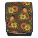 Hand-drawn illustration of a bullfinch bird on bouquet of dahlia, chrysanthemum, berries and branch of autumn leaves.