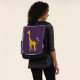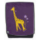 Drôle sac à dos de girafe avec une girafe de bande dessinée grignotant sur une fleur violet clair et tenant quelques fleurs avec sa queue tout en patinant, sur arrière - plan violet foncé. Ce joli design de girafe séduira les filles qui aiment les girafes et les illustrations de dessins animés mignons, ainsi que la couleur violette. Il fera aussi un grand cadeau pour une fille de patineur.