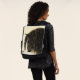 Cheval friésien Noir avec une longue crinière ondée montrant des temps chauds et jaunes de la lumière du soleil de la fin de l'après-midi. OEuvre d'art réaliste créée à partir d'une peinture à l'huile originale de l'équine et de l'artiste faunique Crista S. Forest.