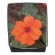 La beauté florale orange rouge sur ce sac à dos est un impatient de Nouvelle Guinée. La photographie originale de ZoeSPEAK est un closeup de la fleur, montrant les formes superposées des six pétales aux couleurs vives, et le centre magenta plus foncé avec un peu d'étamine verte. La fleur est entourée de ses feuilles vert foncé dans le jardin.