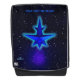 Une image fractale 3D simple et bleu, ressemblant à un vaisseau spatial stylisé, superposée à un arrière - plan étoilé. Des anneaux concentrés (ondes de gravité ?) sortent de l'engin spatial pour pénétrer dans le vide apparemment vide de l'espace. Une aura bleu clair entoure l'engin spatial, peut-être le résultat d'un déplacement plus rapide que la lumière. Ajoutez votre propre texte.