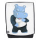HIPPOPOPOTAMUS BLEU CUT PORTANT DES PANIERS ET DES CHEMISES