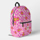 C'est un sac à dos personnalisé de nom personnalisé pour les filles avec jolies à damiers jolies fleurs souriantes motif en rose chaud avec de petites carrés.