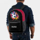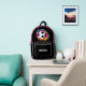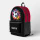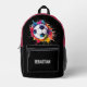 Ajoutez votre nom d'enfant ou vos initiales à ce sac à dos amusant avec un ballon de football avec des éclaboussures de peinture colorées, le tout sur un arrière - plan noir. si vous avez besoin d'aide avec ce design, contactez-moi janine à travers mon zazzle store message bouton willow spring studio et sera heureux de vous aider.