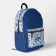Joli bleu et blanc aquarelle florales sur ce sac à dos pour elle. Monographie avec ses initiales ou son nom court. Parfait pour retourner à l'école.
